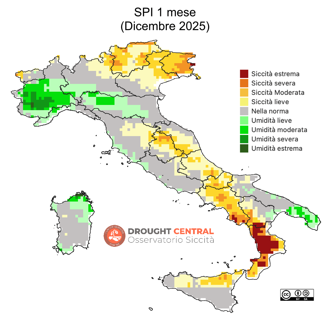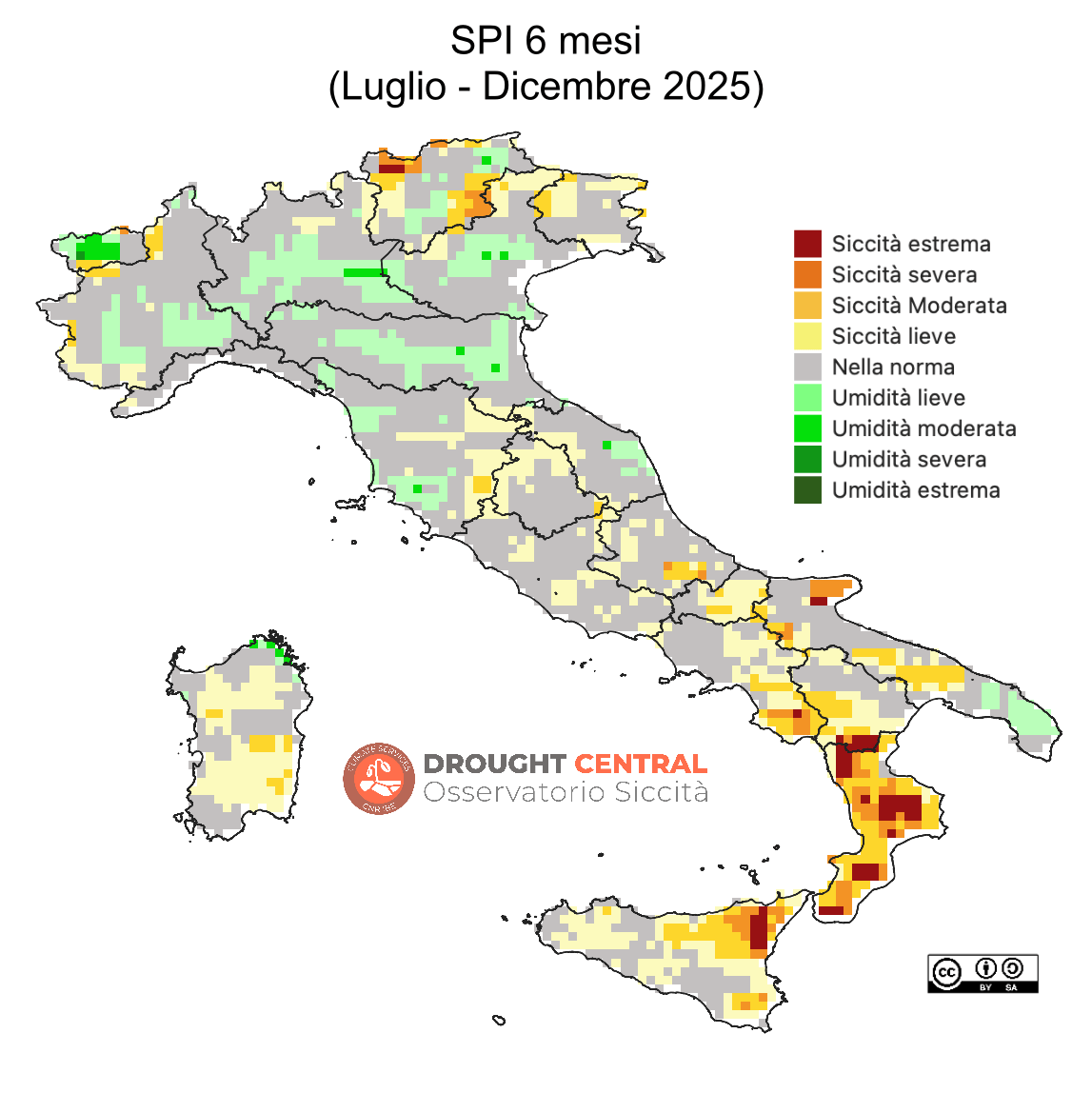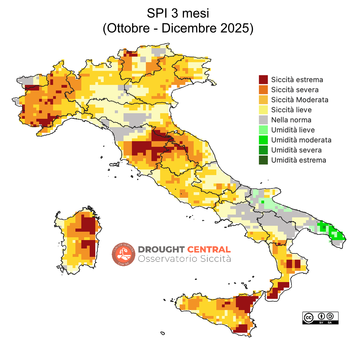 Indice scelto a livello internazionale, attraverso la “Dichiarazione di Lincoln”, per l’identificazione di siccità meteorologiche (SPI 3 mesi).