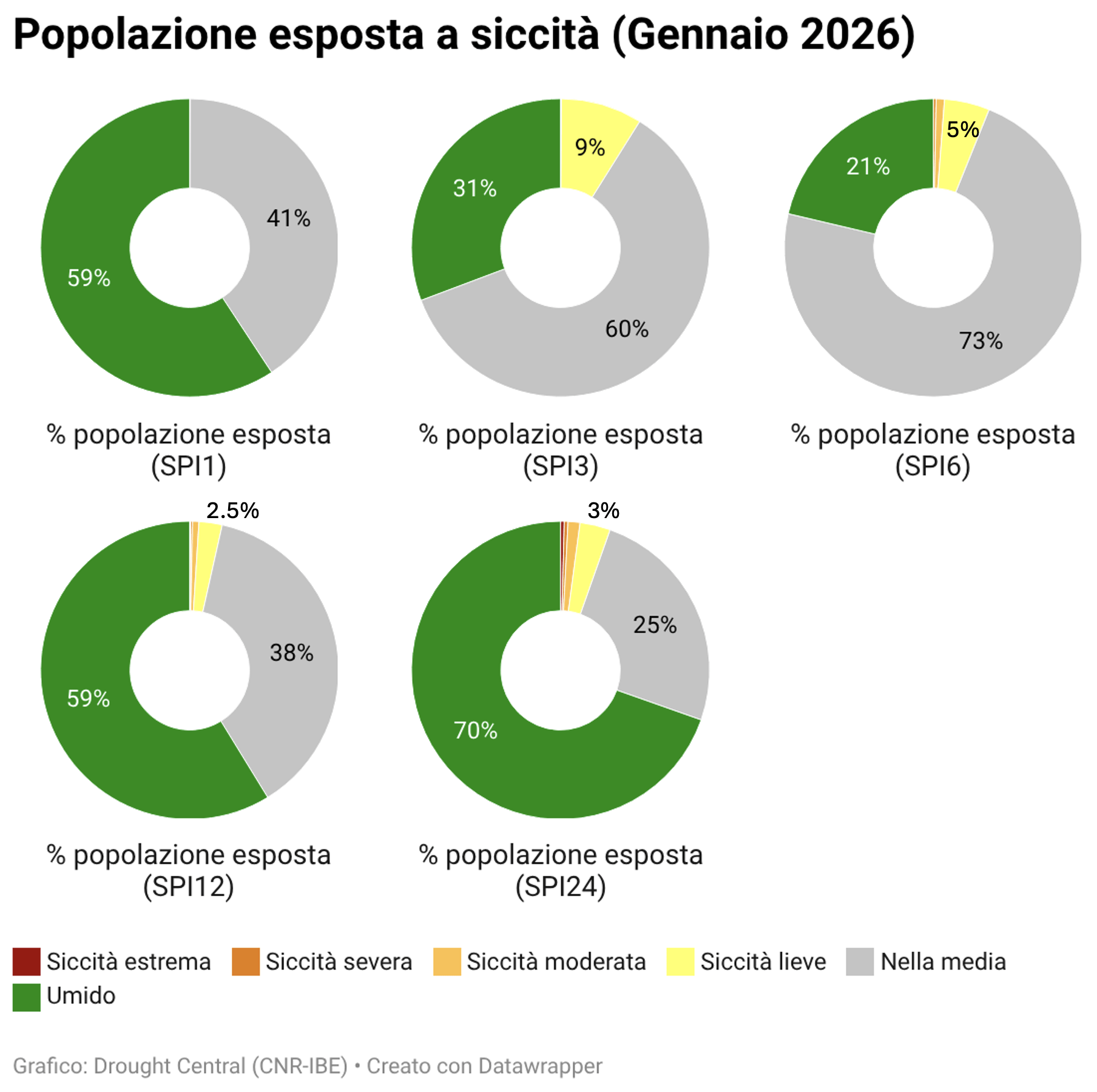 La tabella seguente indica le classi di siccità o surplus in base ai valori dell’indice: