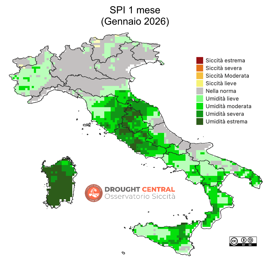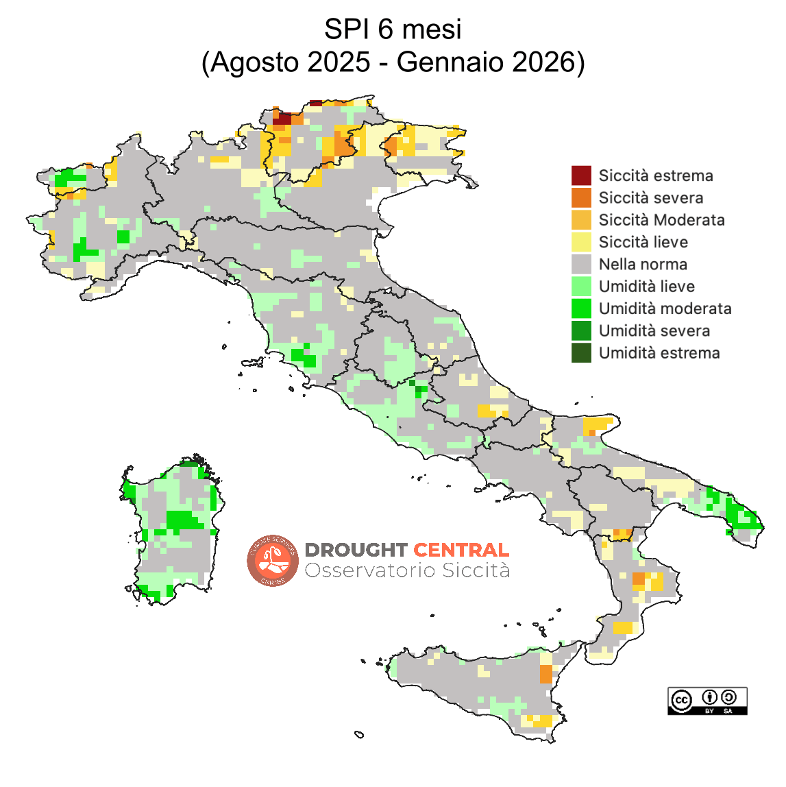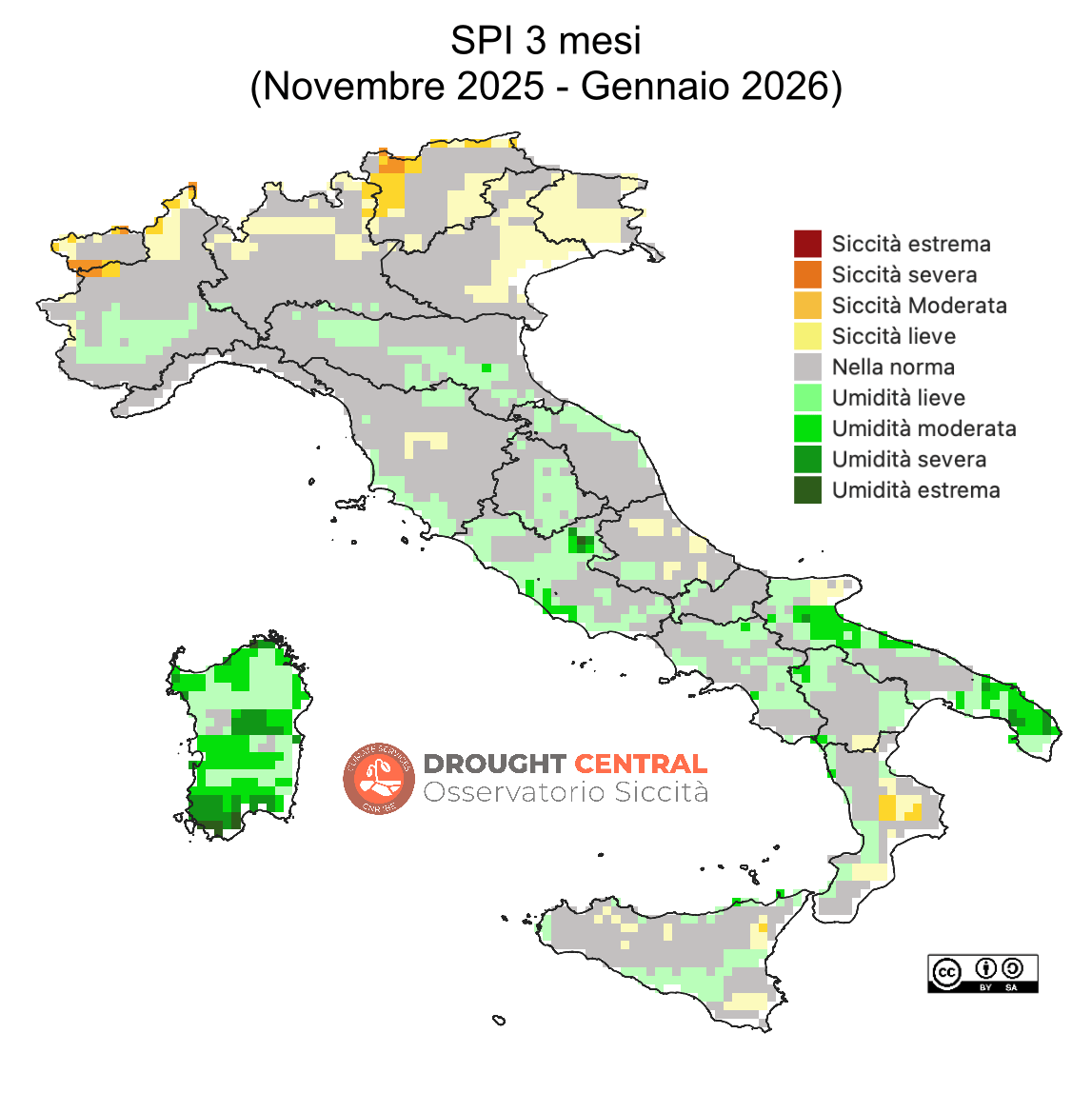 Indice scelto a livello internazionale, attraverso la “Dichiarazione di Lincoln”, per l’identificazione di siccità meteorologiche (SPI 3 mesi).