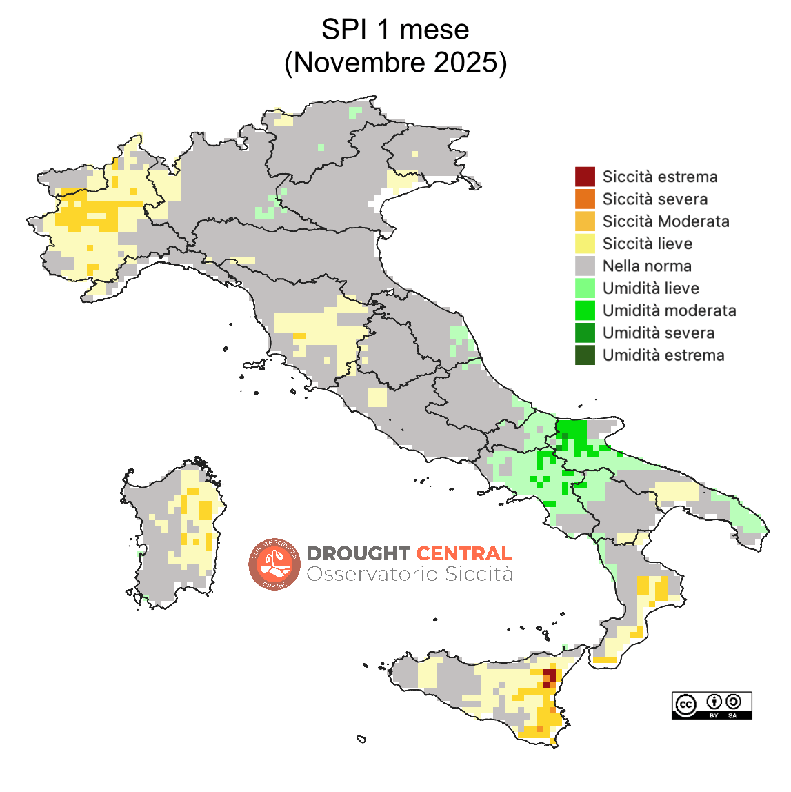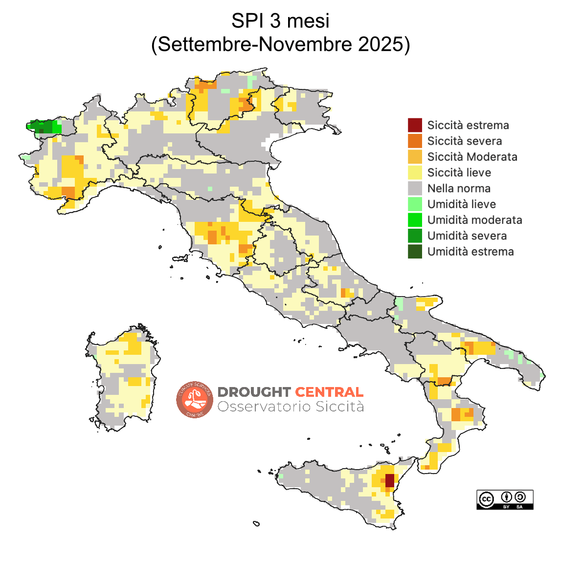 Indice scelto a livello internazionale, attraverso la “Dichiarazione di Lincoln”, per l’identificazione di siccità meteorologiche (SPI 3 mesi).